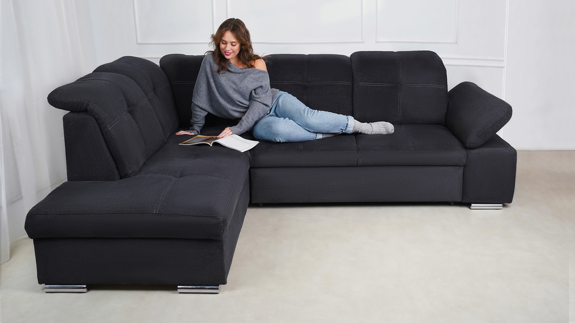 Die stilvolle und gemütliche Couchecke Fjorda von BEWASO vereint alles, was ein perfektes Möbelstück ausmacht. Sie bietet großzügigen Stauraum sowie komfortable Ruhe- und Schlafmöglichkeiten – die ideale Grundlage für ein behagliches Zuhause.